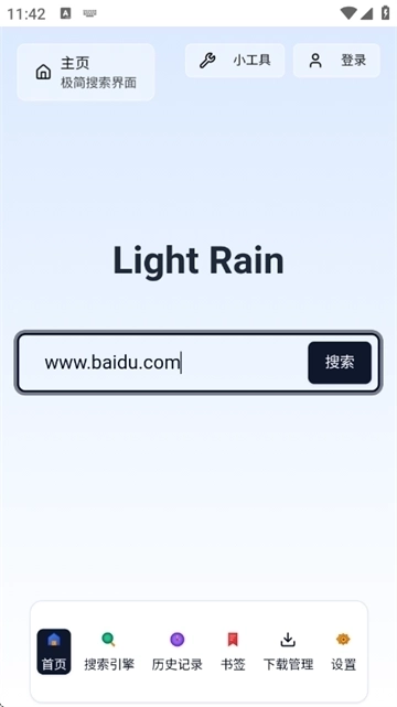 轻雨浏览器是一款小巧便捷的上网浏览软件。它能让你快速访问各种网站,不管是新闻资讯、娱乐视频,还是学习资料的网站,都不在话下。界面简洁干净,没有乱七八糟的广告干扰。搜索功能很强大,只要输入你想找的内容,就能快速找到相关信息。还支持多标签页浏览,你可以同时打开好几个页面,来回切换也很方便。如果你想要一个简洁好用的浏览器,轻雨浏览器就挺合适。有需要的朋友可以下载体验!