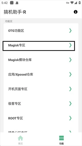 获取Root权限后,您将可以使用搞机助手·R的全部功能,以【Magisk专区】为例,您可以进入该专区进行相关操作。