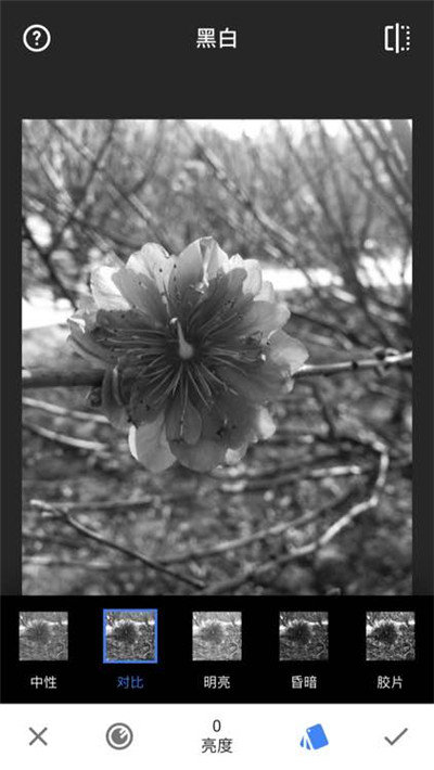 黑白-此滤镜的灵感源于暗室,可为相片创造经典的黑白外观。