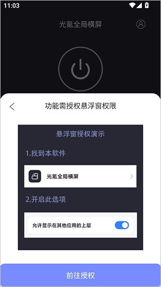2、根据页面弹出的提示,授予软件悬浮窗权限,确保各项功能能正常运行。