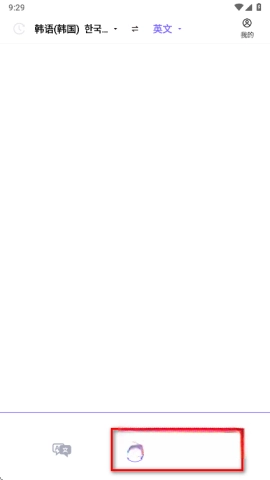 2、进入主页后,点击左下角箭头所指的文本框,开始你的翻译旅程。